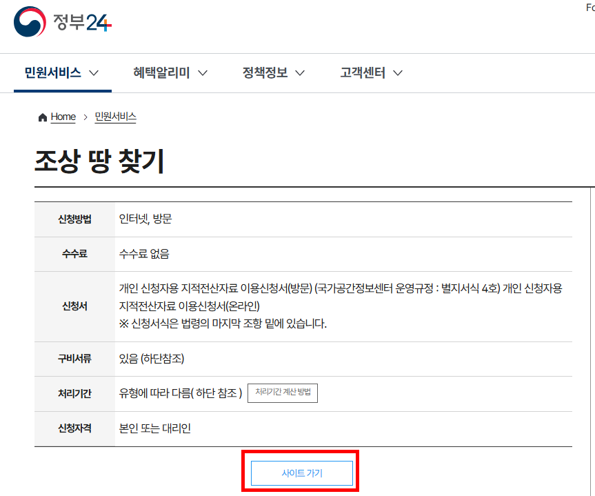 조상땅찾기 서비스는 숨은 상속 재산을 찾을 수 있는 무료 국가 서비스입니다.