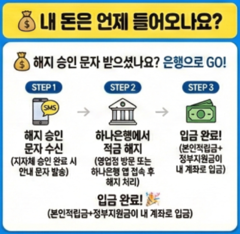 승인 문자를 받은 뒤 하나은행에서 해지를 해야 입금이 진행됩니다.