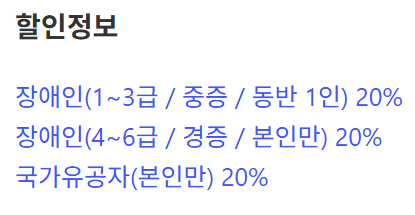 - 장애인 1~3급 (동반 1인 포함)