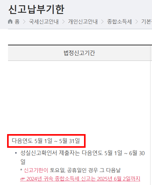2025년 귀속 소득 기준 → 2026년 5월에 신고