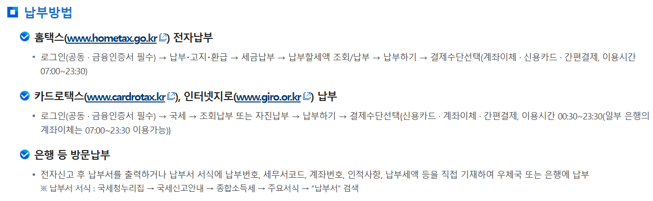 ✔ 홈택스·손택스·카드로택스 납부 가능