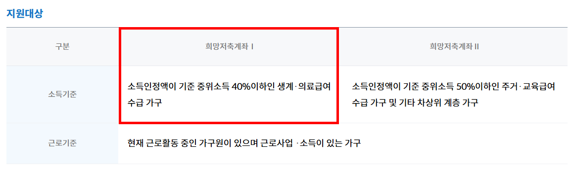 | 구분 | 희망저축계좌1 | 희망저축계좌2 |